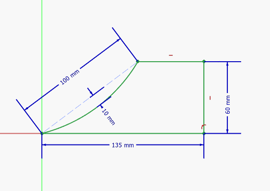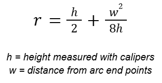Next, you would place on your curved surface and use that reading (will be negative) to constrain the distance from the top of the curve to the plane of the two points. The radius dimensioning tool is then used to get a value based on your parameters. You can also use this formula to find the radius dimension.