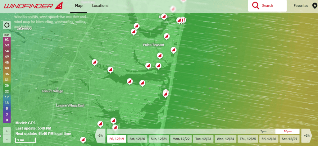 For me, I need to visualize the wind and my sailboat as mapped onto a chart. I love using Windfinder.com because they use arrow vectors layered on a map. Another very useful tool when figuring out how to dock with a Laser, Sunfish, or day sailor under sail alone!!