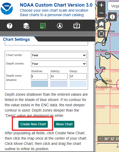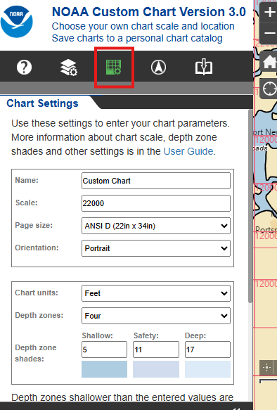 Link to the NOAA Charts How-To Guide Pdf: https://devgis.charttools.noaa.gov/pod/helpDocFiles/NOAACustomChartQuickStartGuide.pdf